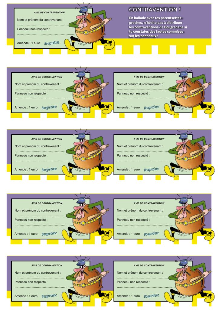 Télécharge et imprime ta planche, puis découpe les contraventions pour les donner à tes proches quand ils ne respectent pas les panneaux de signalisation. Une manière drôle d’apprendre le code de la route en s’amusant !