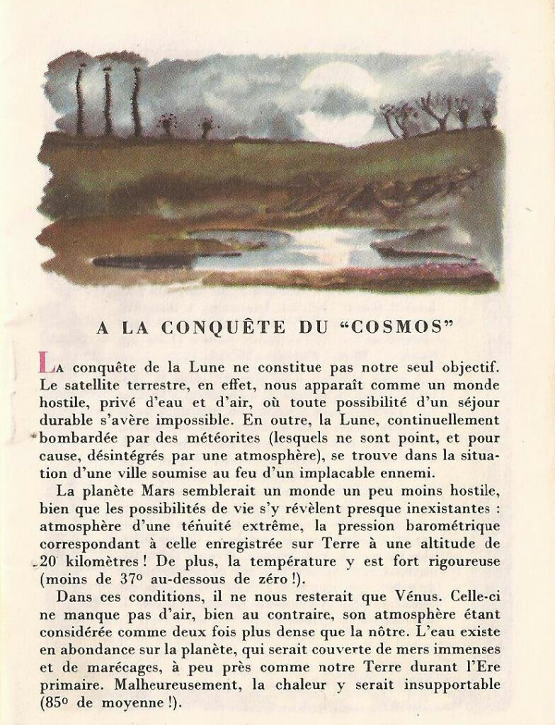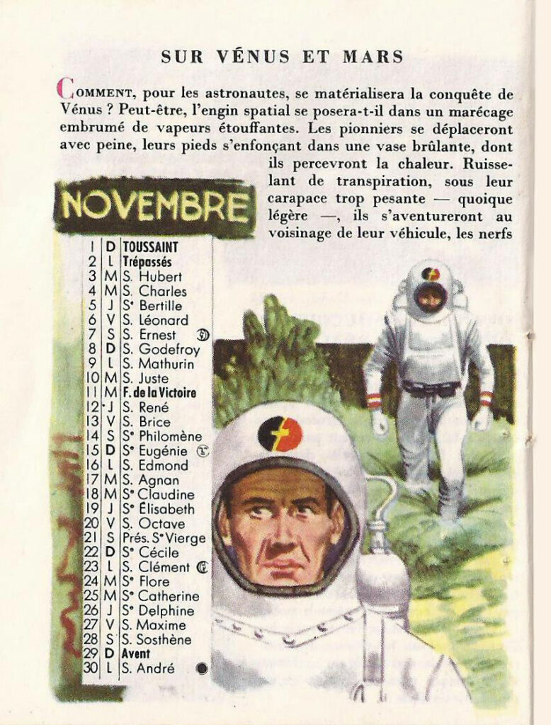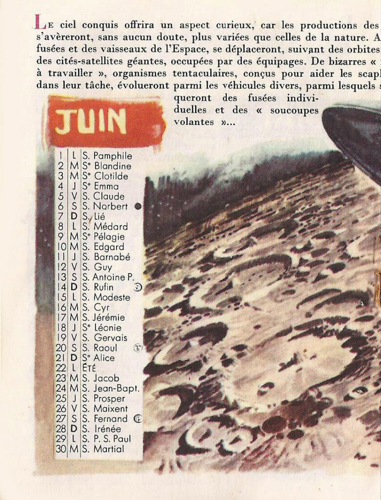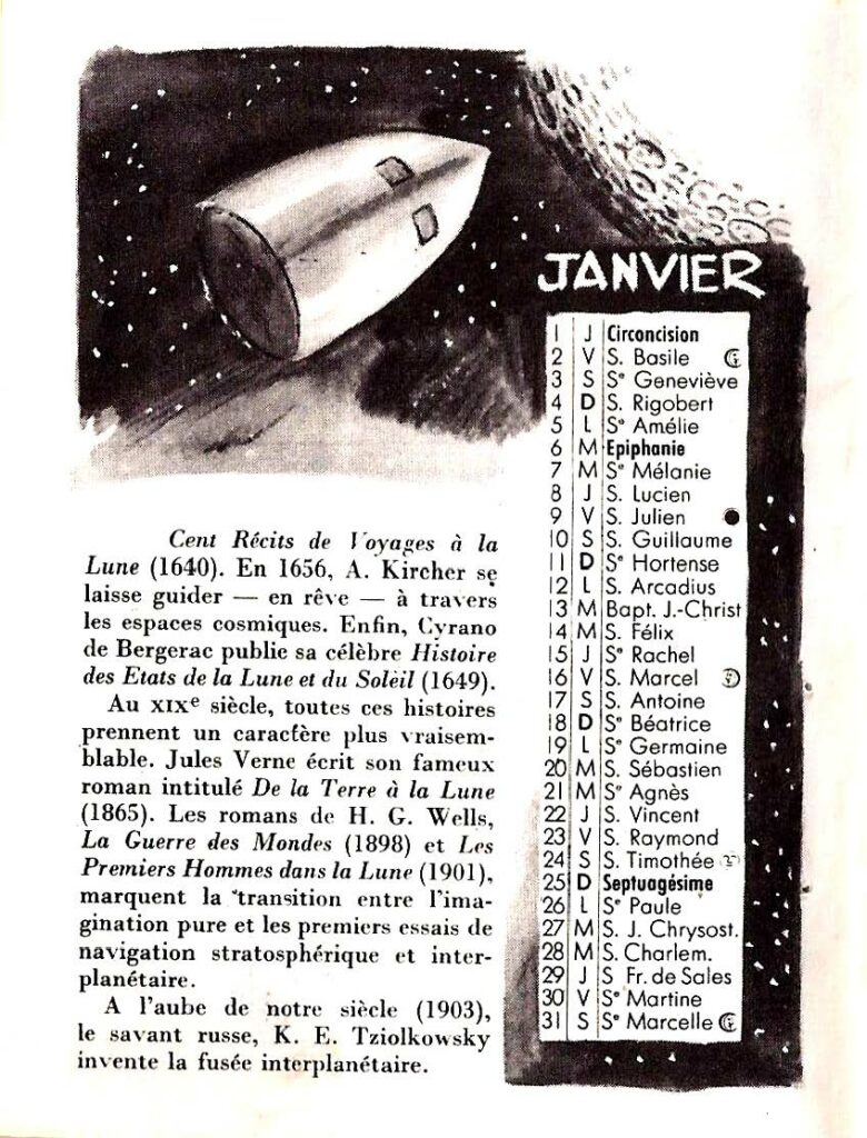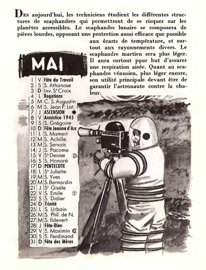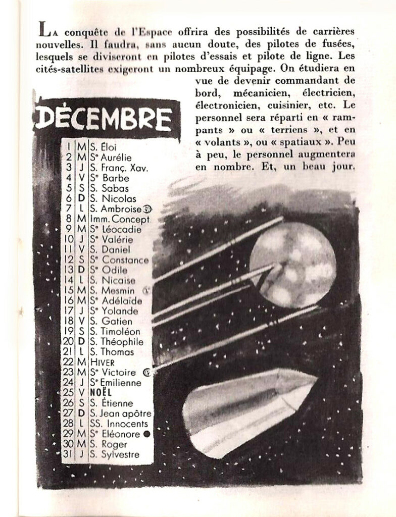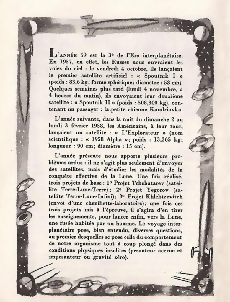 Conçu comme un véritable almanach illustré, il entraîne ses lecteurs dans un voyage visionnaire à travers l’espace : conquête de la Lune, exploration de Mars et de Vénus, fusées, satellites, scaphandres et… soucoupes volantes.